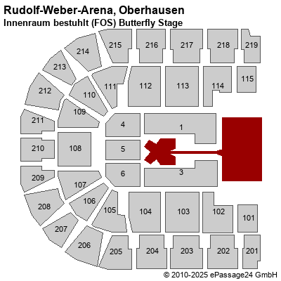 Die multifunktionale König-Pilsener-Arena, nahe dem CentrO Oberhausen, wurde 1996 im Rahmen des Programms „Neue Mitte“ eröffnet. Bei einer maximalen Zuschauerzahl von 12 650 sind unter anderem eine Centerstage, sowie Musical und Theaterkonstruktionen möglich. Besuchern stehen bis zu 14 000 kostenlose Parkplätze zur Verfügung, sowie eine erstklassige Anbindung an den Personennahverkehr. Für ein kleines Stück Hollywood sorgt der „Walk of Fame“ vor der Arena, auf dem herausragende Künstler mit ihrem eigenen Stern verewigt werden. Einen Stern erhielten unter anderem bereits Joe Cocker, KISS und die Backstreet Boys.