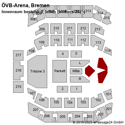 ÖVB-Arena Bremen (Innenraum bestuhlt - FOS 1+2 - Steg) Saalplan